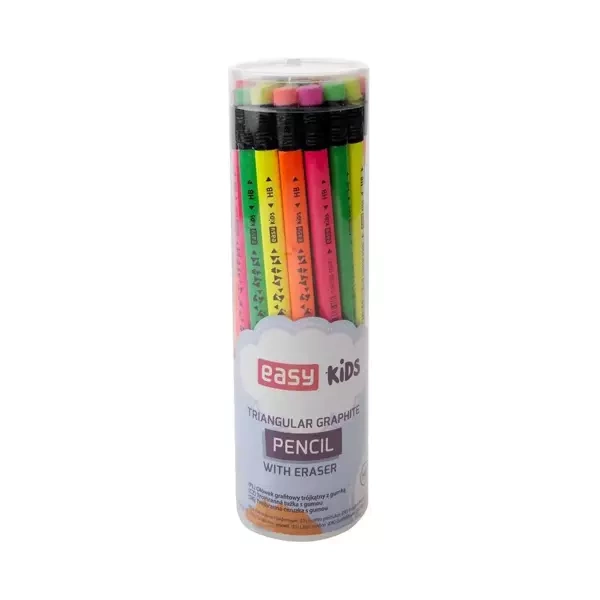 EASY Ołówki Trójkątne Jumbo z Gumką - Neon - 24 Sztuki