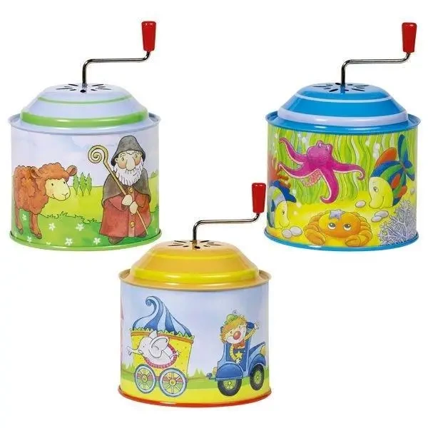 Podczas obracania korbką, ta metalowa puszka wydobywa miłe dźwięki dla ucha. Idealna dla każdego miłośnika muzyki, kto chce doświadczyć nieco nostalgii i cieszyć się przyjemnymi dźwiękami wytwarzanymi w prosty sposób.