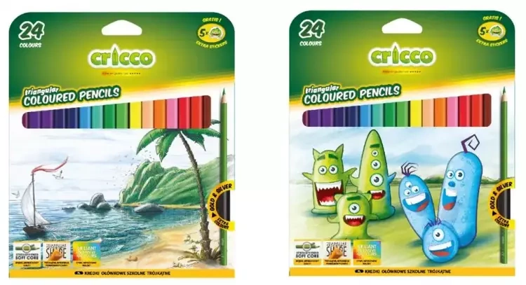 Kredki trójkątne CRICCO odznaczają się śmiałymi i żwawymi kolorami, które zapewniają niesamowite efekty wizualne. Wykorzystują miękką, wzmocnioną strukturę grafitu, która jest doskonała do różного rodzaju kolorowania. Co więcej, ich ergonomiczny trójkątny kształt pomaga kształtować prawidłowy chwyt, co sprawia, że są one odpowiednie dla wszystkich, niezależnie od wieku. Kredki są łatwe do temperowania, co gwarantuje bezproblemowe korzystanie. Lepszy obraz na temat tych kredek można uzyskać dzięki złotej kredce, zamieszczonej bezpośrednio w pudełku. Oprócz tego w zestawie znajdują się też dodatkowe naklejki, które pozwolą jeszcze bardziej spersonalizować twoje wyjątkowe prace. Kredki trójkątne CRICCO zostały stworzone zgodnie z europejskimi standardami, co świadczy o ich wysokiej jakości. Pakowane są w przeróżne wzory opakowań, które są wysyłane losowo, wprowadzając tym samym element niespodzianki do każdej przesyłki. Kreatywne i zaprojektowane z myślą o użytownikach, kredki trójkątne CRICCO, z pewnością ożywią każdy twój artystyczny projekt.EAN: 5907377375876