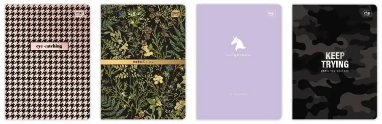 Oferta dotyczy opakowania zbiorczego, w skład którego wchodzi aż 10 sztuk zeszytów. Każdy z nich ma inny, modny wzór na swojej powierzchni.