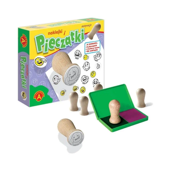 Od teraz twórcze zabawy z dziećmi staną się jeszcze bardziej interesujące! Proponujemy zestaw kreatywny, zawierający 6 pieczątek z zabawnymi buźkami, symbolizującymi pochwałę lub dezaprobatę poprzez unikalną mimikę i napisy. Dzięki temu, dzieci mogą w prosty sposób wyrazić swoje emocje, ucząc się jednocześnie rozpoznawania emocji u innych osób. Pieczątki można odbijać na kartce za pomocą dwóch kolorów tuszu - czarnego i czerwonego, które znajdują się na poduszkach w praktycznym, plastikowym pudełku. Odbite wzory można swobodnie kolorować kredkami lub wykorzystać je jako dodatkową ozdobę na dziełach plastycznych. Całość uzupełniają 135 kolorowych naklejek, które dodają zabawie jeszcze więcej uroku! Zabawka nie tylko doskonale bawi, ale również daje możliwość twórczego wyrażania emocji oraz nauki przez zabawę. Wprowadź radość i motywację do każdej chwili spędzonej z dziećmi dzięki temu wyjątkowemu zestawowi kreatywnemu Pieczątki i naklejki Motywacje ALEX.EAN: 5906018017649