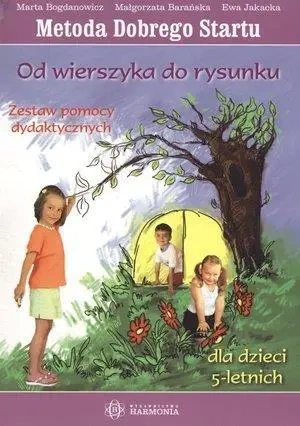 Od wierszyka do rysunku to program Metody Dobrego Startu oparty na materiale nieliterowym (24 abstrakcyjne wzory ułożone według stopnia trudności). Przygotowany z myślą o dzieciach w wieku przedszkolnym (5-latkach) wszechstronnie wspomaga ich rozwój psychoruchowy, przygotowuje do nauki pisania. Ćwiczenia-zabawy przedstawione w tym programie można stosować w celu profilaktyki niepowodzeń szkolnych (przez korygowanie zaburzeń funkcji wzrokowo-przestrzennych, słuchowo-językowych, ruchowych oraz ich współdziałania), kształtowania lateralizacji oraz orientacji w schemacie ciała i w przestrzeni. Publikacja składa się w dwóch teczek, do kupienia osobno. W zestawie pomocy dydaktycznych znajdują się 24 wzory, 24 kolorowe ilustracje oraz broszura ze wskazówkami metodycznymi. Natomiast w teczce dla dziecka są 72 karty pracy: po trzy do każdego wzoru. Karty pracy zostały przygotowane w sposób odpowiedni dla małych dzieci: zawierają duże elementy, których ilość na jednej karcie jest niewielka, co ułatwia dziecku ich postrzeganie oraz pracę z ich wykorzystaniem