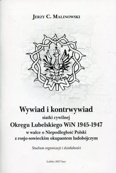 Książka Wywiad i kontrwywiad siatki cywilnej Okręgu Lubelskiego WiN 1945-1947 w walce o Niepodległość Polski z rosjo-sowieckim okupantem ludobójczym. Studium organizacji i działalności lokuje się na pograniczu historiografii i politologii. Prezentowane opracowanie jest skrupulatnym opisem struktury i działalności wywiadu i kontrwywiadu Okręgu Lubelskiego WiN w latach 1945-1947. Ta konspiracyjna struktura obejmowała teren nieco większy niż ówczesne województwo lubelskie. Do tej pory nie ma publikacji, w której tytułowe zagadnienie zostałoby omówione tak dociekliwie i dogłębnie jak w prezentowanej książce. Właściwą narrację poprzedza krótki wstęp charakteryzujący powojenną politykę okupacyjno-ludobójczą Rosji sowieckiej w zajętej Polsce oraz skalę walki i oporu Polaków. Potem następuje omówienie struktury organizacyjnej wywiadu Okręgu Lubelskiego WiN w latach 1945-1947. W drugiej połowie opracowania przedstawione zostały efekty jego pracy. Tutaj "oczami" wywiadu WiN czytelnik zapoznaje się z różnymi aspektami nowej rzeczywistości rosjo-komunistycznej, jaką Moskale narzucili Polsce i Lubelszczyźnie. Autor stwierdza przy tym, że sprawozdania wywiadowcze WiN (niezwykle bogate informacyjnie i rzetelnie sporządzane) są gorzej traktowane przez różnych badaczy niż archiwalia wytworzone przez ówczesnego okupanta rosjo-sowieckiego i jego polskojęzyczne ekspozytury.