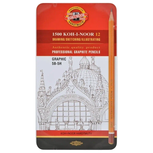 Koh-I-Noor 1502 to unikatowy zestaw ołówków grafitowych, ukochany przez artystów na całym świecie od wielu lat. Wyroby Koh-I-Noor są równoznaczne z niezrównaną jakością i precyzją, a model 1502 jest oznaką prawdziwego mistrzostwa w kreślarstwie. Oferta zestawu obejmuje 12 ołówków o różnej twardości - od 5B do 5H.