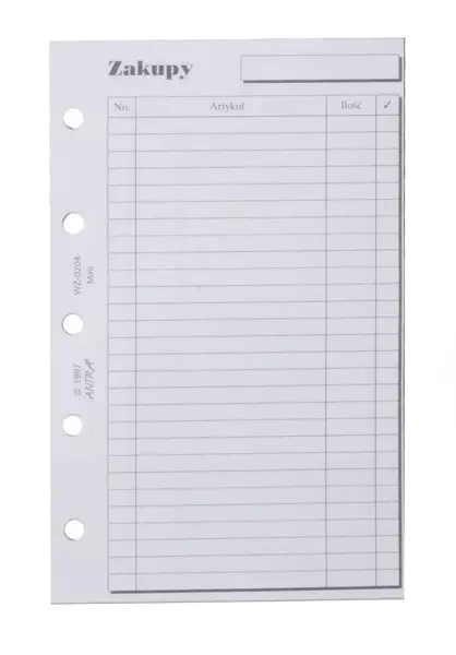 Prezentujemy wkład do organizera o nazwie M Zakupy w kolorze antracytowym, który stworzony został z myślą o ułatwieniu planowania i przeprowadzania codziennych zakupów. Służy on jako doskonała baza do tworzenia listy zakupów, kontrolowania wydatków oraz terminów ważności produktów. Wkład M Zakupy - funkcjonalność i wygoda Innowacyjny wkład do organizera M Zakupy to nie tylko modny dodatek, ale przede wszystkim praktyczne narzędzie, które wspomaga utrzymanie porządku i kontrolowania wydatków. Idealnie sprawdzi się zarówno dla osób prowadzących gospodarstwo domowe, jak i prowadzących własną działalność gospodarczą. Estetyka i trwałość Wkład do organizera M Zakupy wykonany jest z wysokiej jakości materiałów, które zapewniają długą żywotność produktu, a estetyczne wykonanie oraz antracytowy kolor sprawiają, że prezentuje się elegancko i nowocześnie. Wkład ten jest kompatybilny z organizerami innych marek, dzięki czemu nie musisz martwić się o dopasowanie do posiadanego już modelu. Zainwestuj w ten praktyczny dodatek, aby ułatwiać sobie codzienne zakupy i dbać o dobrą organizację swojego życia codziennego.EAN: 5904210002043
