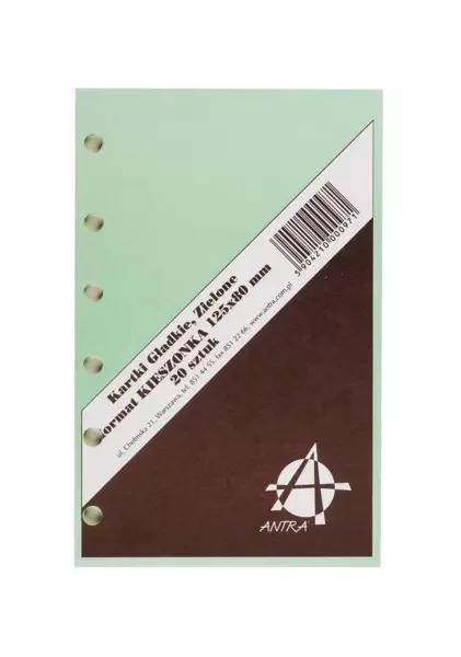Odkryj ANTRA wkład do organizera w odcieniu Czysta zielona, dzięki któremu uporządkujesz swoje notatki, terminy i dokumenty potrzebne na co dzień, zarówno w pracy, jak i w życiu prywatnym. Wkład do organizera zapewnia idealne dopasowanie do organizera K, dzięki czemu będzie kompatybilny z niezawodnym systemem organizacji. Prosty design tej wkładki z łatwymi w obsłudze elementami sprawi, że twój organizator stanie się jeszcze bardziej funkcjonalny. Kolor czysta zielona dodaje nowoczesności, sprawiając, że wkładka wprowadza do Twojego dnia żywą, energetyczną atmosferę. Pokochasz swoją zdolność do utrzymania porządku przy pomocy tego przedmiotu nie tylko ze względu na jakość, ale także na jego estetyczną atrakcyjność. Nie czekaj dłużej! Skorzystaj z wkładu do organizera - K Czysta zielona ANTRA i zyskaj kontrolę nad swoim czasem oraz zadaniami!EAN: 5904210000971