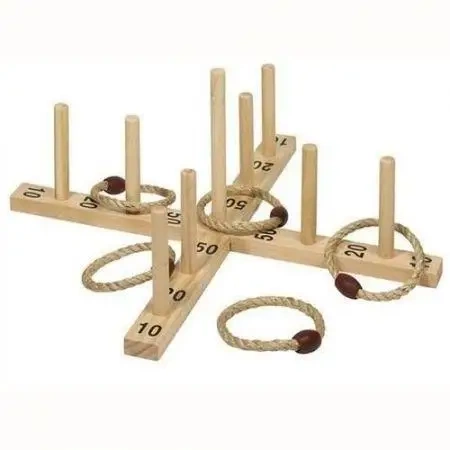 Zapraszamy do świetnej zabawy w rzucanie kółek na kije. Ta gra doskonale wpływa na rozwój koordynacji ruchowej i zdolności celowania. Idealna opcja nie tylko do gry w domowym zaciszu, ale również na świeżym powietrzu w ogrodzie.