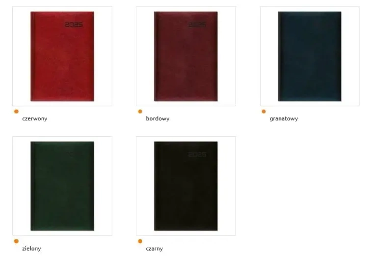 Kalendarz oferuje 1 dzień na stronie, pozwalając na zapisywanie rzeczowych informacji i szczegółowych notatek.