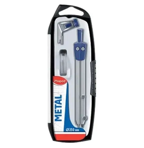 Zestaw trzech elementów marki START to klasyczny metalowy cyrkiel ze specjalnym miejscem na grafity. W skład zestawu, poza cyrklem, wchodzi również uniwersalny uchwyt na drewniany ołówek oraz dodatkowy grafit o średnicy 2mm. Cyrkiel START pozwala na wykonanie okręgów o maksymalnym rozstawie ramion do 250mm. Produkt jest pakowany w praktyczne etui, co ułatwia jego przechowywanie i transport. Zapewnia precyzyjne rysowanie dzięki wygodnemu uchwytowi i solidnej, metalowej konstrukcji.EAN: 3154141975127