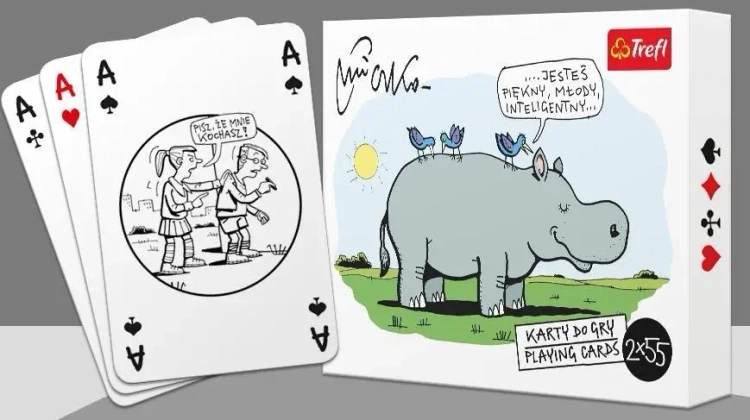 Dwupak kart do gry, składający się z 2 pełnych talii (każda zawierająca 52 karty plus 3 jokery) zaprojektowany przez Andrzeja Mleczkę. Karty są ozdobione rysunkami o tematyce obyczajowej, co dodaje im unikalnego charakteru. Znakomita propozycja dla miłośników gier karcianych ceniących niepowtarzalne wzornictwo. Idealny dodatek na wieczór w gronie znajomych czy rodzinie.EAN: 5904262149321