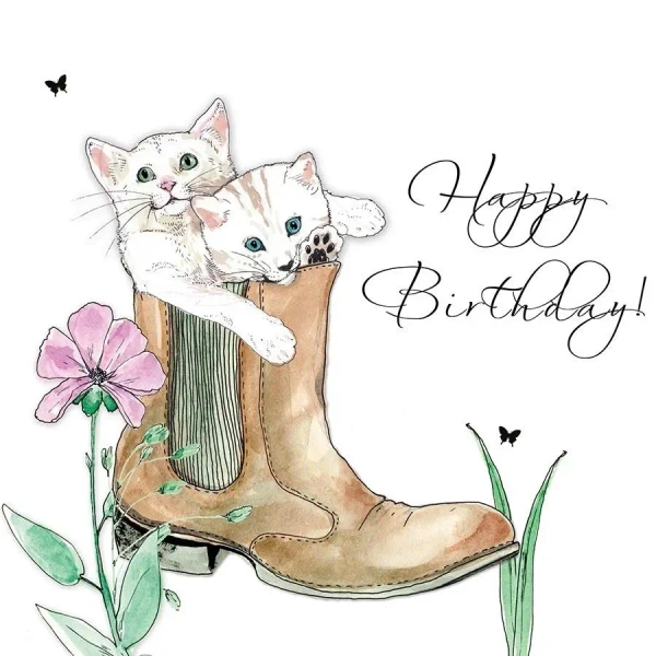 Ten wyjątkowy karnet przygotowany za pomocą ręcznej pracy, został ozdobiony eleganckim, drobnym kryształkiem marki Swarovski. Jest to produkt bez tekstu, dołączany do niego jest koperta - idealne połączenie, które pozwoli Ci przekazać osobiste życzenia na każdą okazję.Urodziny koty w bucie