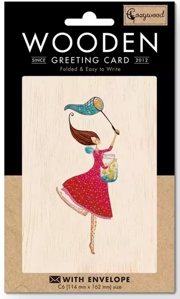 Karnet drewniany, dostępny w formacie C6, dostarczany razem z kopertą. Został wykonany z najwyższą dbałością o szczegół na Litwie.