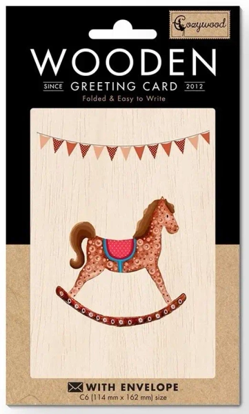 Karnet drewniany C6 + koperta Konik na biegunach - Cozywood