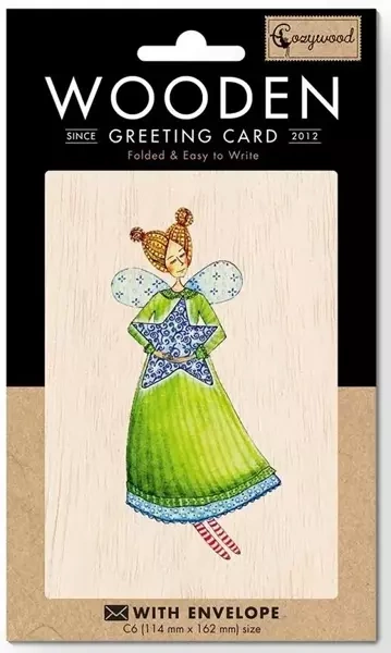 Karnet drewniany C6 + koperta Anioł z kwiatem - Cozywood