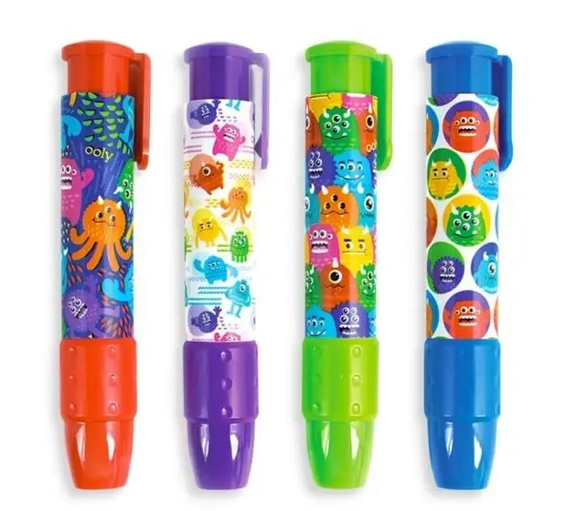 Za pomocą kilku prostych kliknięć możesz wyciągnąć gumkę i gotowe - jest już do kolejnych zadań. Dostępne są w 4 różnych wersjach kolorystycznych i z zabawnymi komiksowymi potworkami na oprawie!