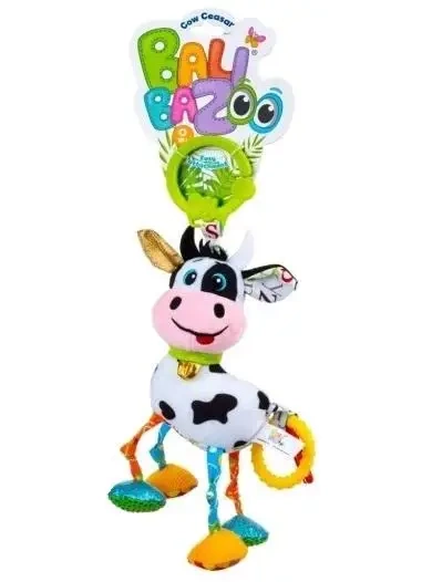Krowa Caesar to urocza zawieszka, która z pewnością przyciągnie uwagę każdego malucha! Oprócz swojego niezaprzeczalnego uroku, posiada również wiele innych zalet, które zaciekawią dzieci. Szeleszczące uszy i kopytka krowy dodają jej dodatkowego wdzięku, a jedno z kopytek grzechocze, drugie piszczy przy naciskaniu, a pozostałe dwa szeleszczą. Jej ogon zdobią dwa kolorowe gryzaczki, które doskonale sprawdzą się jako pomoc dla ząbkujących bobasów.