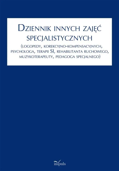 Polecamy na nowy rok Dziennik innych zajęć specjalistycznych, przeznaczony dla logopedy, korekcyjno-kompensacyjnych, psychologa, terapii SI, rehabilitanta ruchowego, muzykoterapeuty, pedagoga specjalnego.