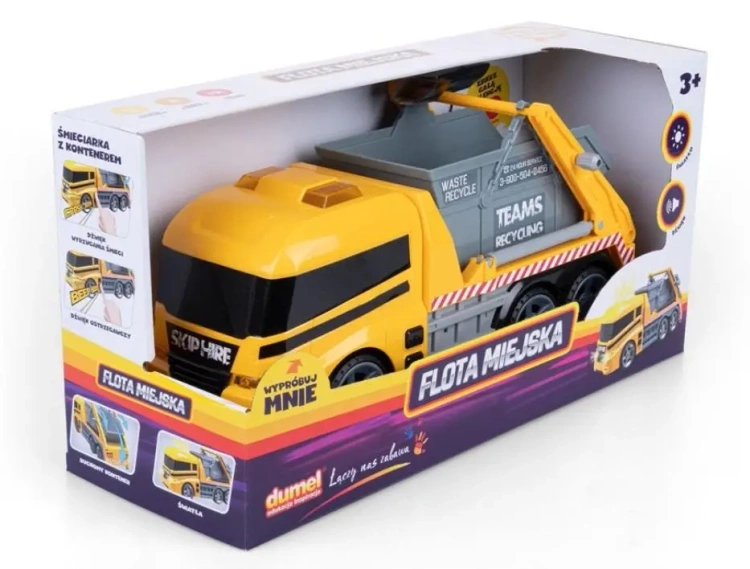 Flota miejska śmieciarka z kontenerem Dumel - idealna zabawka dla każdego małego miłośnika pojazdów specjalnych