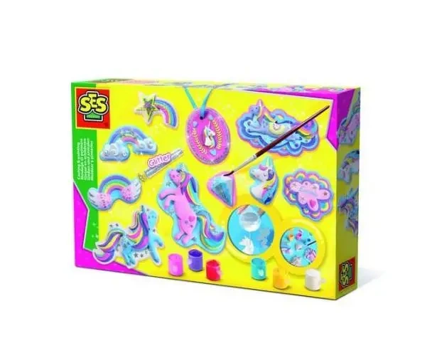 Przywiązując wagę do dużej formy, możemy własnoręcznie stworzyć z gipsu fantastyczne figurki zdobione motywem jednorożca. Zespół składa się z gipsu, sześciu odcieni farb, pędzla i brokatu.