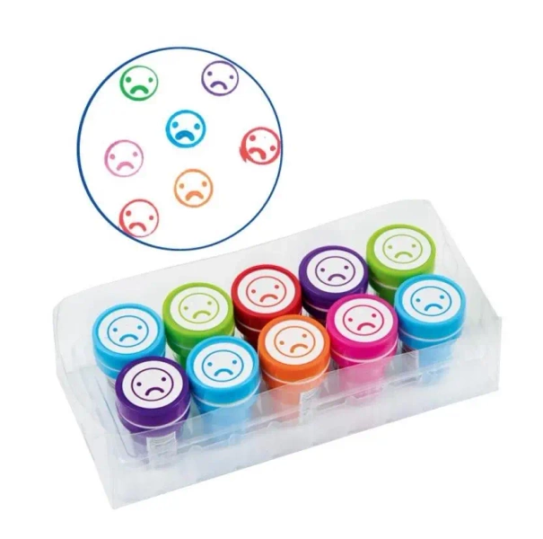 Wyjątkowe pieczątki FIORELLO z buźkami smutnymi to idealny sposób na ozdobienie zeszytów, prezentów, zaproszeń, listów czy prac plastycznych. Dzięki nim dodasz swoim projektom wyrazu oraz oryginalności. Kolorowy tusz nasączony w pieczątkach sprawia, że każde odbicie jest wyraźne i estetyczne. Obudowa stempla jest idealnie dopasowana do koloru tuszu, a zatyczki wykonane z wzorami buźki smutnej. W ofercie dostępne są pieczątki w różnych wariantach kolorystycznych. Indywidualny kod kreskowy na każdym stempelku ułatwia identyfikację oraz kontrolę jakości produktu. W zestawie znajduje się jeden wzór w 6 różnych kolorach tuszu, co pozwala na twórcze wykorzystanie pieczątek. Produkt spełnia standardy UE, co oznacza, że jest bezpieczny i odpowiedni dla klientów z całej Europy.EAN: 5903364277413