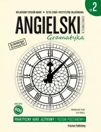Druga część kursu do praktycznej nauki języka angielskiego, która łączy w sobie naukę gramatyki oraz umiejętności mówienia. Jest to idealny suplement do regularnej nauki języka angielskiego oraz pomoc w przygotowaniu się do egzaminów. W prosty i jasny sposób przekazuje wiedzę na temat konstrukcji gramatycznych i zachęca do ćwiczeń. To także doskonały materiał wspomagający naukę zarówno dla nauczyciela, jak i dla ucznia.