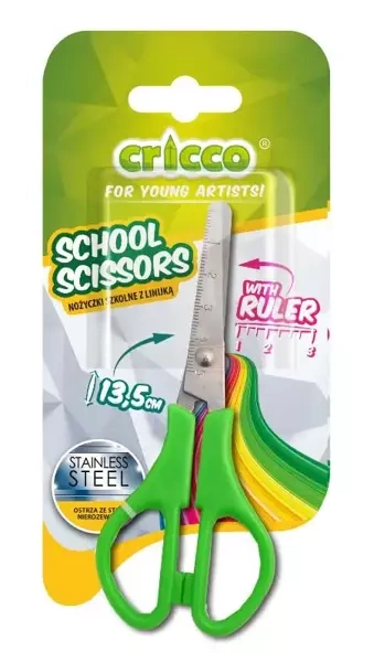 Nożyczki szkolne z linijką 13,5cm Cricco - idealne dla każdej dłoni