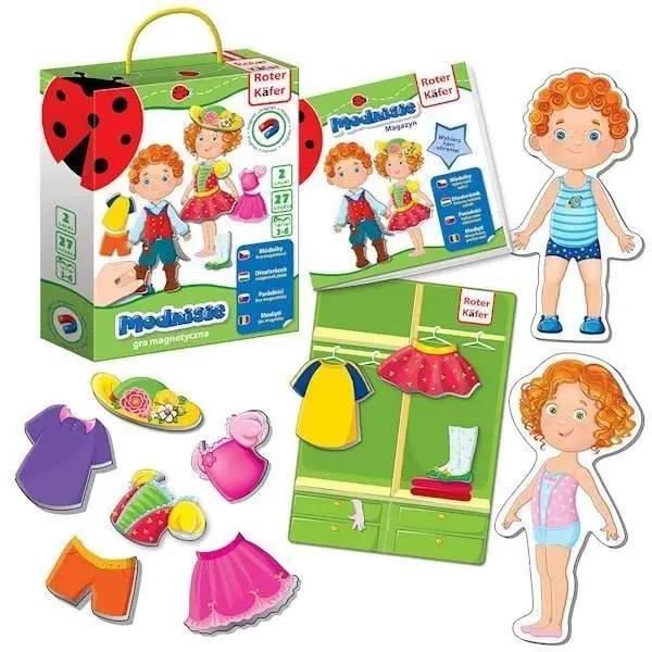 Dzięki inspiracji modelami i wskazówkami z dołączonego magazynu mody, maluchy dowiedzą się, jakie elementy garnituru dobrze ze sobą współgrają, a jakie nie. Nauczą się też, jak trafnie zestawiać wszystkie detale według jednego stylu oraz jak robić to z gustem. Niewątpliwie zabawka ta pobudzi twórcze zdolności i rozwija smak estetyczny dziecka.