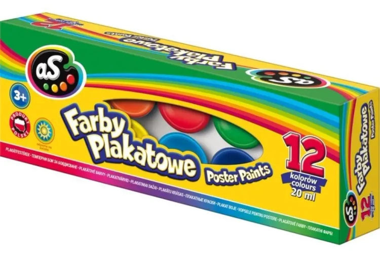 Farby plakatowe 12 kolorów 20ml AS - ASTRA papiernicze