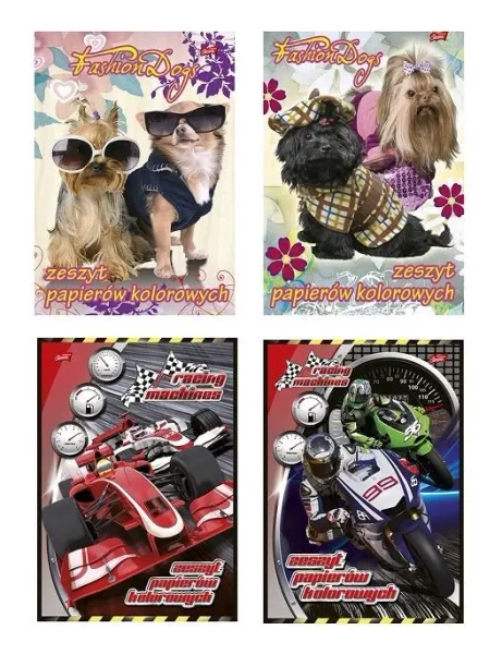 Prezentowany zeszyt zawiera w sobie dziesięć kart o różnych kolorach w formacie A4. Każda z nich powstała z papieru o gramaturze 80 g/m2. W skład tego kolorowego asortymentu wchodzą barwy: żółta, pomarańczowa, czerwona, jasnozielona, ciemnozielona, błękitna, niebieska, fioletowa, brązowa oraz czarna. Okładka zeszytu jest kredowa i ma gramaturę 115g/m2, wykorzystując najnowsze trendy wzornicze, opracowane przez renomowaną firmę UNIPAP. Co więcej, by podkreślić wysoką jakość i dbałość o detale, okładka została dodatkowo polakierowana, co dodaje jej eleganckiego połysku. Zeszyt dostępny jest w różnorodnych wzorach, które są wysyłane losowo. Dzięki takiemu rozwiązaniu, każdy zakupiony zeszyt jest wyjątkowy i dostarcza wiele radości i kreatywnych możliwości.EAN: 5904149008017