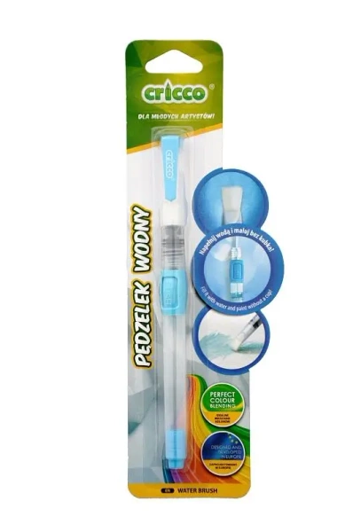 Jest to pędzelek nadający się do wielu technik malarskich, zarówno do pracy z farbami wodnymi, jak i pastelami czy kredkami akwarelowymi. Wyposażony jest w końcówkę z delikatnego, syntetycznego włosia, gwarantującą precyzyjne prowadzenie linii, niezależnie od wybranego materiału malarskiego. Pędzelek CRICCO jest uzupełniony o zbiornik na wodę o pojemności 8ml, co umożliwia jego używanie nie tylko w warunkach domowych, ale także podczas plenerowego malowania. Konstrukcja pędzelka obejmuje specjalny dozownik, który pozwala na wykonanie ruchów z odpowiednią ilością wody. Klienci mogą wybrać z dwóch wersji produktu: z wąskim, okrągłym końcem lub z płaskim końcem średniej wielkości - M.Uniwersalność i wygoda w jednym - pędzelek wodny CRICCO