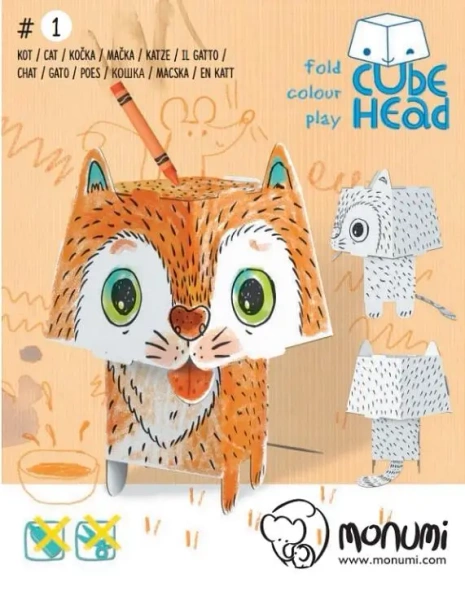 Cube Head to seria innowacyjnych, trójwymiarowych modeli do składania i kolorowania. Wykonane z ekologicznej tektury zestawy zapewniają dzieciom nie tylko godziny twórczej zabawy, ale także wsparcie w rozwoju kluczowych umiejętności. Każdy model Cube Head jest zaprojektowany tak, aby można go było łatwo złożyć bez użycia nożyczek i kleju, co sprawia, że jest bezpieczny i dostosowany do najmłodszych. Możliwość kolorowania modeli różnymi narzędziami - kredkami, flamastrami, markerami czy farbami - stymuluje kreatywność i pozwala dzieciom wyrazić swoją indywidualność.