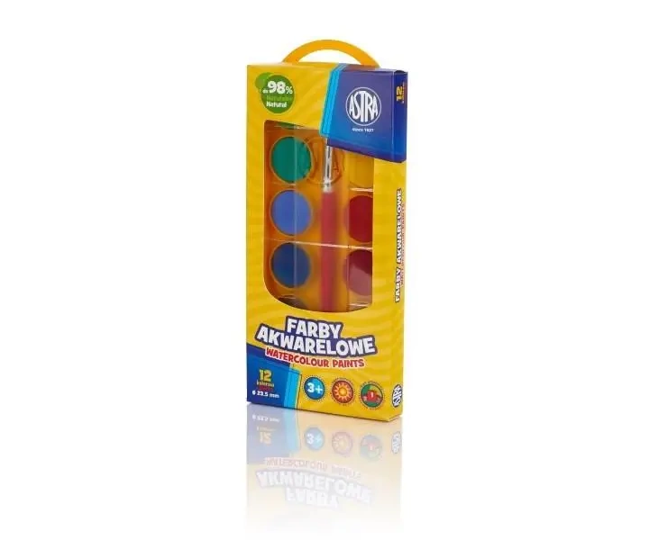 Farby akwarelowe fi23,5mm 12 kolorów ASTRA - ASTRA papiernicze