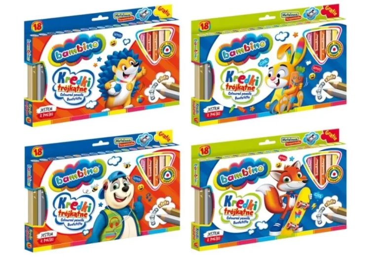 Kredki trójkątne drewniane 18 kolorów BAMBINO - ST-MAJEWSKI