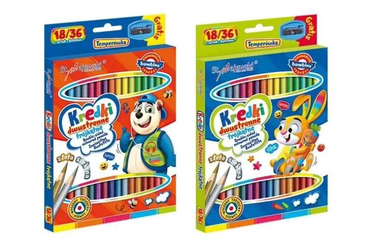 Kredki trójkątne dwustronne 18/36 kolorów BAMBINO - ST-MAJEWSKI