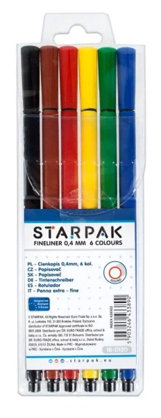 Cienkopisy 6 kolorów okrągłe 0,4 mm - STARPAK