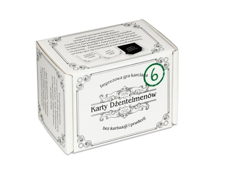 Prezentujemy szóstą odsłonę gry karcianej zakrapianej humorystyczną beczką pełną ironii i sarkazmu – idealnej na towarzyskie imprezy. Przeznaczona dla miłośników mrocznego humoru, ta gra nie zna granic kurtuazji i powściągliwości. Każda rundę inicjuje Dżentelmen, który korzysta z Czarnej Karty, aby zadać pytanie. Reszta graczy odpowiada posługując się swoją najbardziej zabawną Białą Kartą. Ten zestaw jest pierwszą w Polsce dwujęzyczną grą tego typu, która pozwala na wspólne spędzanie czasu z przyjaciółmi mówiącymi po angielsku. Nb! Gra zawiera teksty pełne swobody i bez cenzury.Zawartość pudełka