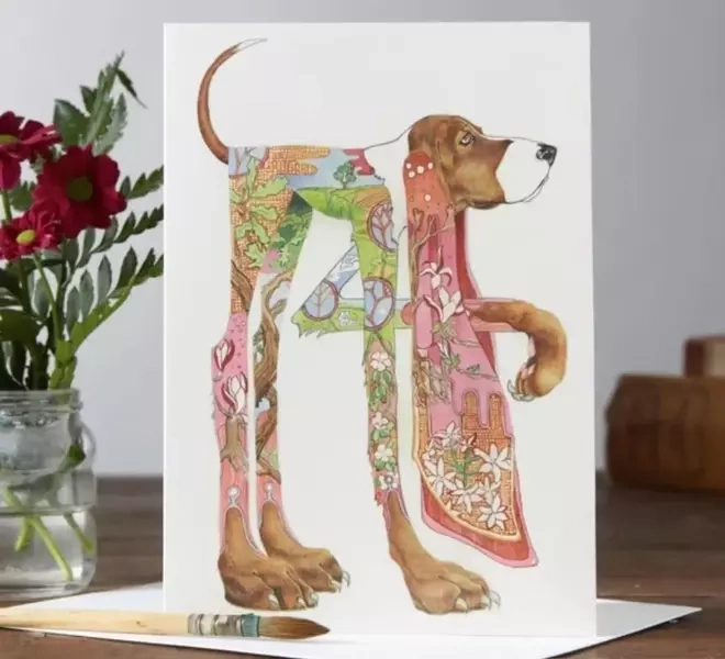 Ekskluzywny, pusty karnet, dekorowany jest motywem inspirowanym pięknem natury i naszych czworonożnych przyjaciół. Prezentuje on bowiem obraz psa ogara na okładce. Został wykonany z wysokiej jakości papieru o gramaturze 330g/m2.Produkt z Wielkiej Brytanii