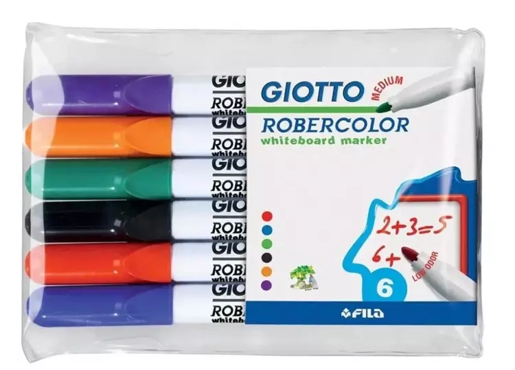 Markerowy zespół Giotto składa się z sześciu kolorów; te kompletny zestaw zawiera barwy fioletową, pomarańczową, zieloną, czarną, czerwoną i niebieską. Kreśl, pisz, ilustruj lub podkreślaj najważniejsze punkty swojej prezentacji zapewniając jej świeży i wyrazisty wygląd. Nasze markery do tablic ścierają się bez trudu, umożliwiając szybkie i łatwe czyszczenie tablicy. Produkt idealny dla szkół, biur, a także dla domu. Kolorowe markery umożliwiają łatwe i przyjemne oznaczanie, zwracają uwagę i pomagają skupić na sobie uwagę.EAN: 8000825008078