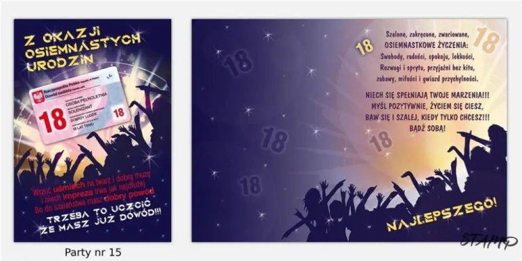 Karnet Party naklejany B6+koperta Urodziny 18 wz15 - Stamp