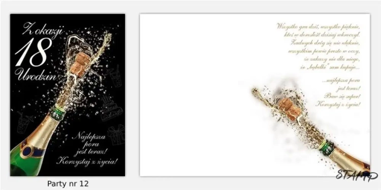 Karnet Party naklejany B6+koperta Urodziny 18 wz12 - Stamp