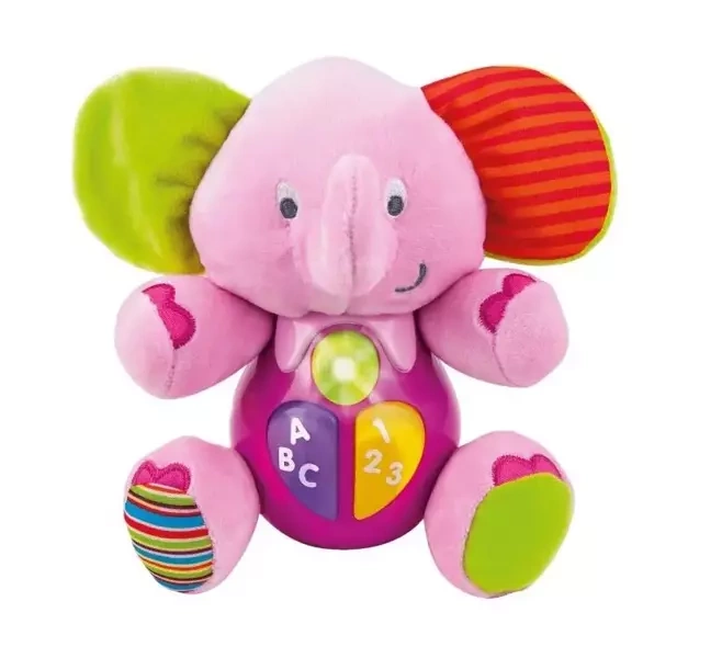 Przytulaczek Słoninka Smilusia to zabawka pełna kolorów, którą pokochają najmłodsze dzieci. Wyposażony w zabawne funkcje, które z zaciekawią Twoje dziecko, Przytulaczek z pewnością stanie się ulubionym towarzyszem ich zabaw. Ten sympatyczny słonik mówi po polsku i na swoim brzuszku ma dwa świecące przyciski funkcyjne. Po ich naciśnięciu zabawka wydaje wesołe dźwięki oraz gra melodie, co z pewnością wprowadza mnóstwo zabawy i uczy Twoje dziecko pierwszych cyfr i liter. Przytulaczek Smilusia stymuluje zmysły wzroku i słuchu oraz rozwija sprawność manualną dziecka. Mięciutka główka i stópki sprawiają, że zabawka jest nie tylko świetną zabawką edukacyjną, ale również idealnym kompanem do przytulania.Co zyskuje Twoje dziecko z Przytulaczkiem