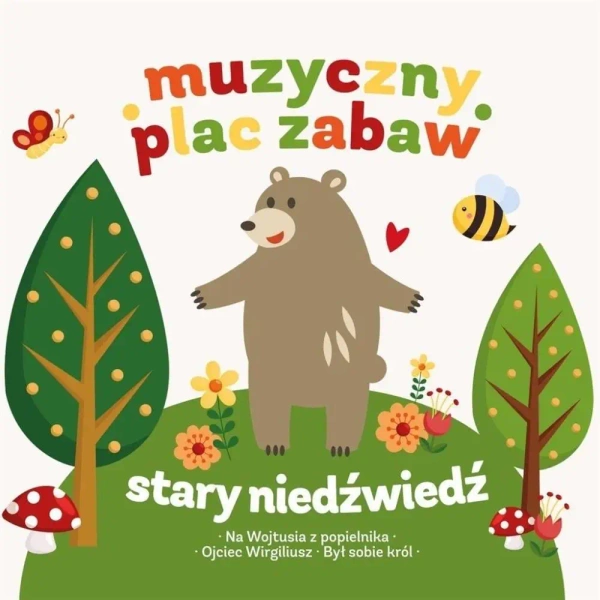Zabawy z muzyką mogą trwać bez końca. Szczególnie z taką, którą znajdziecie na płytach z serii Muzyczny plac zabaw. Każda piosenka to wspaniały akompaniament do wszystkich gier i psot w towarzystwie rodzeństwa, koleżanek i kolegów, a czasem nawet rodziców. Można ich słuchać także w drodze do szkoły, do przedszkola albo jadąc na wakacje. Z tymi utworami żadna podróż nie będzie się dłużyła. I w ogóle już nigdy nie będzie nudno. Takie piosenki jak Stary niedźwiedź, Puszek maluszek, Ach, śpij kochanie, Był sobie król oraz Czereśniowe kolczyki można śpiewać na okrągło. A to tylko kilka z tych, które znalazły się na Muzycznym placu zabaw.