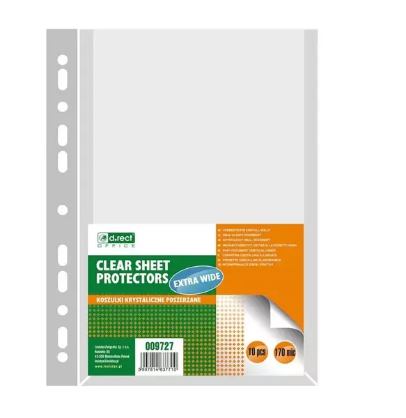 Koszulki te cechują się właściwościami antystatycznymi, co zapobiega przyciąganiu kurzu i gwarantuje dłuższą świeżość przechowywanych dokumentów. Ponadto, wyposażone są w wzmocniony pasek z uniwersalną perforacją, który umożliwia łatwe i szybkie umieszczenie koszulki w segregatorze lub teczce.Opakowanie foliowe