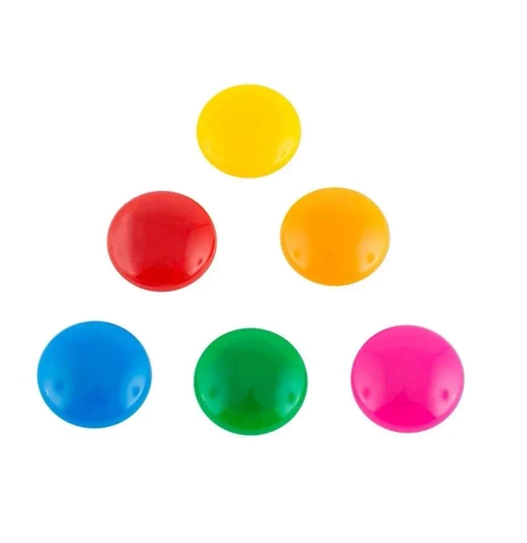 To produkt składający się z magnesów o średnicy 30 mm. Do zestawu dołączono magnesy w rożnych kolorach dodających uroku i różnorodności. Każde opakowanie zawiera sześć sztuk tych praktycznych i kolorowych magnesów.