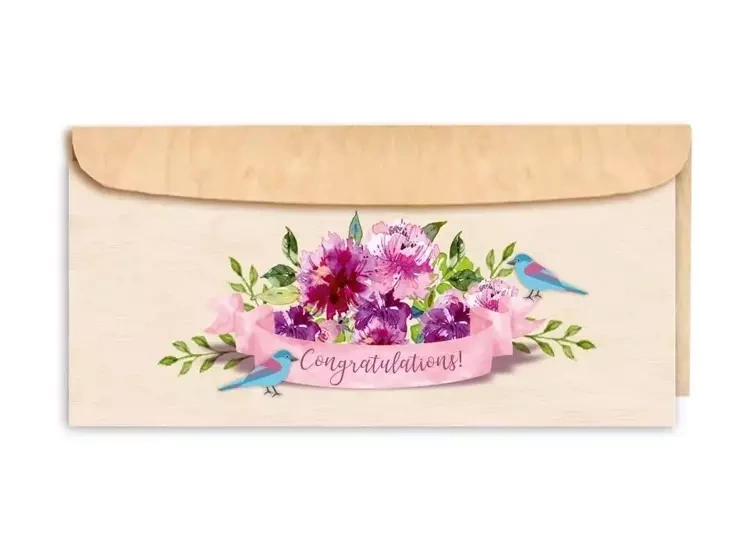 Karnet drewniany DL z drewnianą kopertą Gratulacje - Cozywood