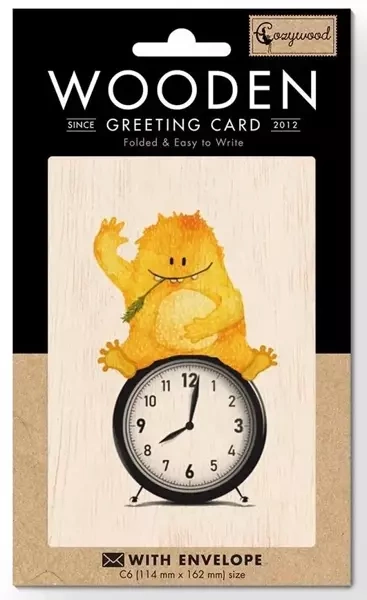 Karnet drewniany C6 + koperta Misiek na zegarze - Cozywood