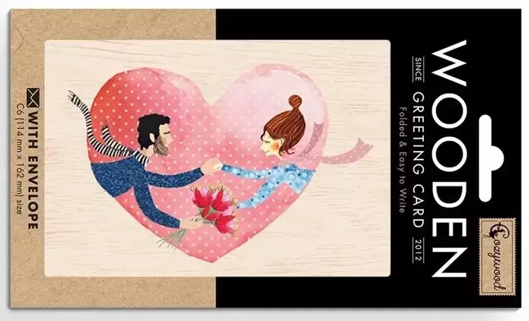 Karnet Drewniany prezentowany w rozmiarze C6, który jest kompletowany z kopertą. Karnet został wytworzony na terenie Litwy.