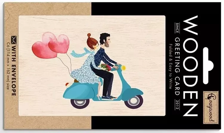 Karnet drewniany C6 + koperta Ślub skuter - Cozywood