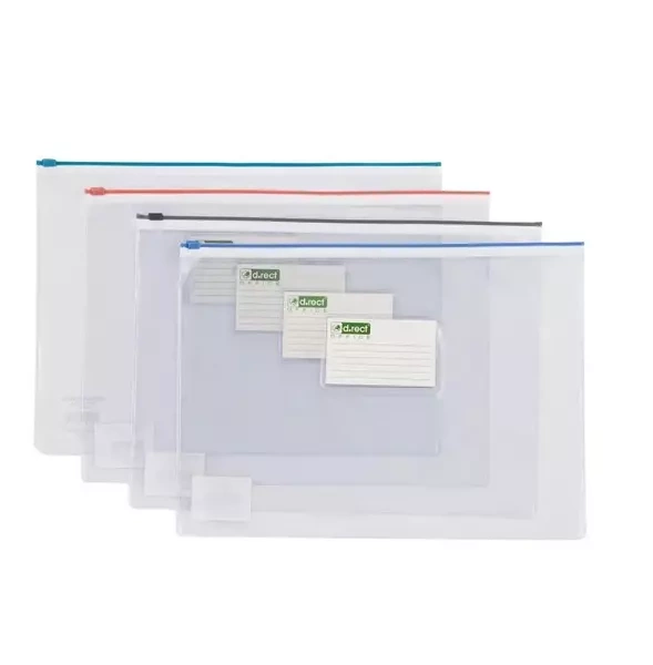 Posiada ciekawy design i świetną funkcjonalność. Torebka Zipp Bag D-RECT została wykonana z trwałej, przezroczystej folii PVC o grubości 180 mikrometrów, co zapewnia estetyczny wygląd oraz długotrwałe użytkowanie. Jest ona idealnym rozwiązaniem na przechowywanie i transportowanie dokumentów w formacie A4, a jej szczelny zamek strunowy chroni przed dostępem wody lub innych zabrudzeń. Praktyczne zamknięcie zabezpiecza zawartość torebki przed przypadkowym wyjęciem lub uszkodzeniem. Korzystanie z torebki A4 Zipp Bag D-RECT sprawia, że dokumenty i akcesoria biurowe są zawsze bezpiecznie przechowywane oraz łatwo dostępne.EAN: 5907814634382