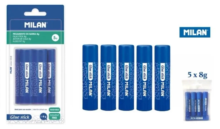 Niezastąpiony w pracy, szkole lub domu - klej w sztyfcie MILAN to uniwersalne rozwiązanie na wszelakie potrzeby klejenia. W zestawie znajdziesz aż 5 sztuk kleju, które są dostarczane w różnych opakowaniach - blisterach lub woreczkach, wybrane losowo.
